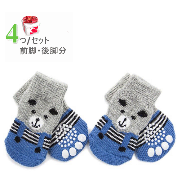 犬靴下 ソックス ブルーベアくつした 滑り止め ゴム付き 室内 ハイソックス ロングソックス 小型犬 中型犬 大型犬 S-XL 1セット4枚入 【メール便送料無料(ネコポス)】♪
